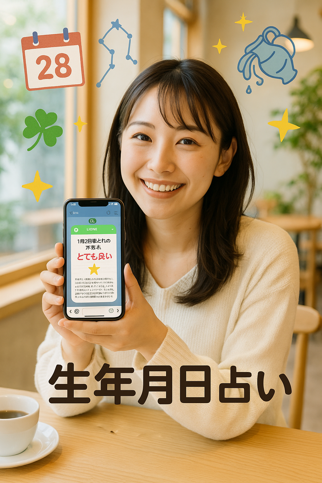 おすすめされて始めたLine占いが毎日の楽しみになって、本当にびっくりしています。自分の生年月日から分かる色んな運勢やアドバイスがめっちゃ当たるし、LINEで気軽にできるのも嬉しいポイント。